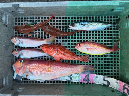 アジ、シロアマダイ、カイワリ、イトヨリ、サバなど数は控えめでしたが魚種が豊富に釣れました。