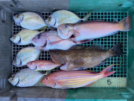 2022 12/25 手漕ぎボート鎌田様 希少なシロアマダイ、カイワリ、オウモンハタなど釣れました。前回12/10にいらした時の鎌田様 手漕ぎボートの釣果。タイ、キジハタ、カイワリなど釣れました。