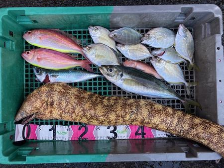 久保田様 ブリ 90cm 9.3kg2023 10/28 船外機付きボート久保田様、萩生様、梶様 ブリ、カイワリ、イトヨリ、ショゴなど釣れました。2023 10/28 手漕ぎボート友野様 イトヨリ、アオハタ、アジなど釣れました。2023 10/28 手漕ぎボート春田夫妻様 カイワリ、アジ、ウツボなど釣れました。2023 10/28 手漕ぎボート 茅ヶ崎から森谷様 カイワリ、イトヨリなど釣れました。写真の他に釣れたサバを泳がせて1mの大物も釣れたそうですが… ブログ五目漁師の釣り三昧をご覧下さいませ。